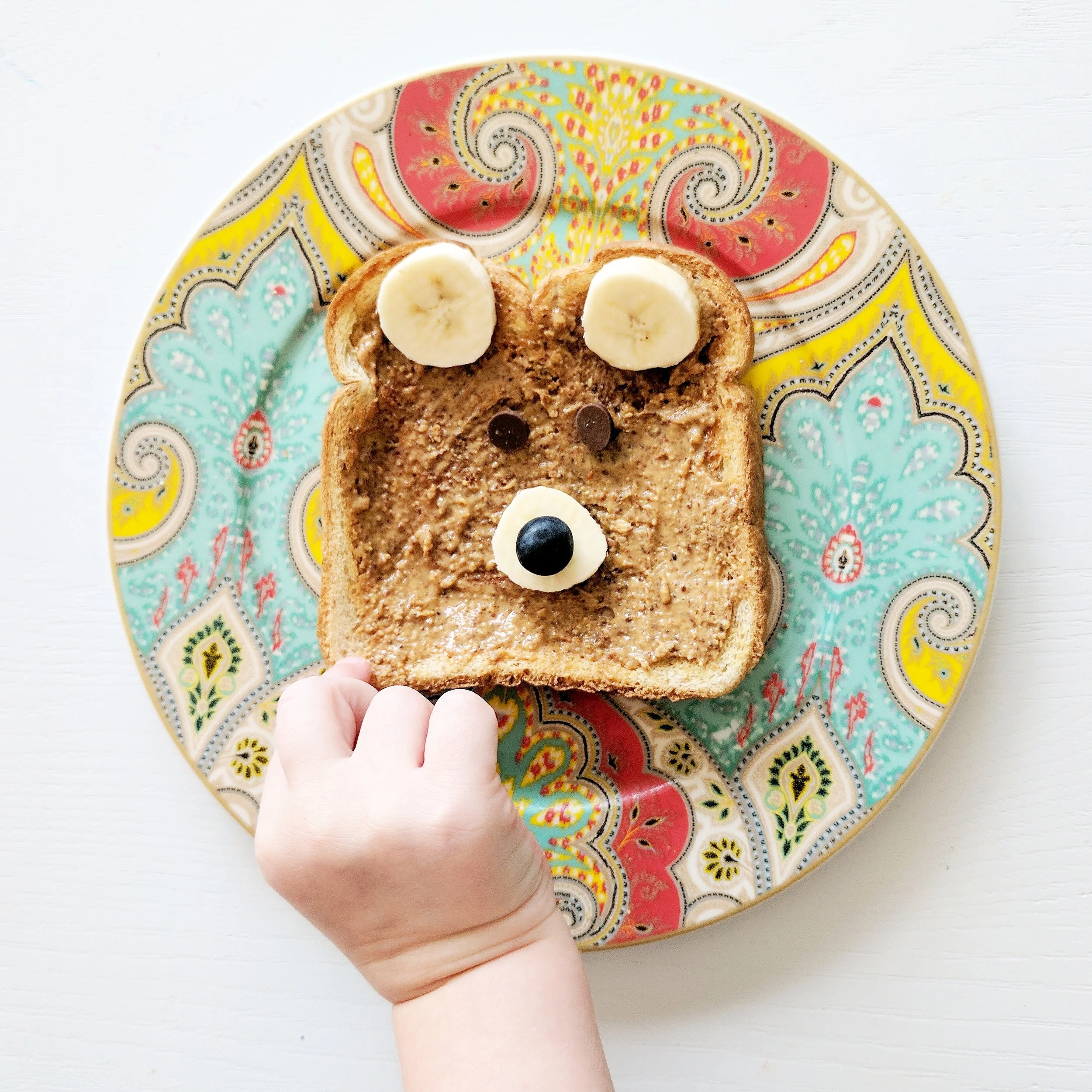 For another easy snack, I made a brown bear on toast using almond butter, bananas, blueberries and chocolate chips!