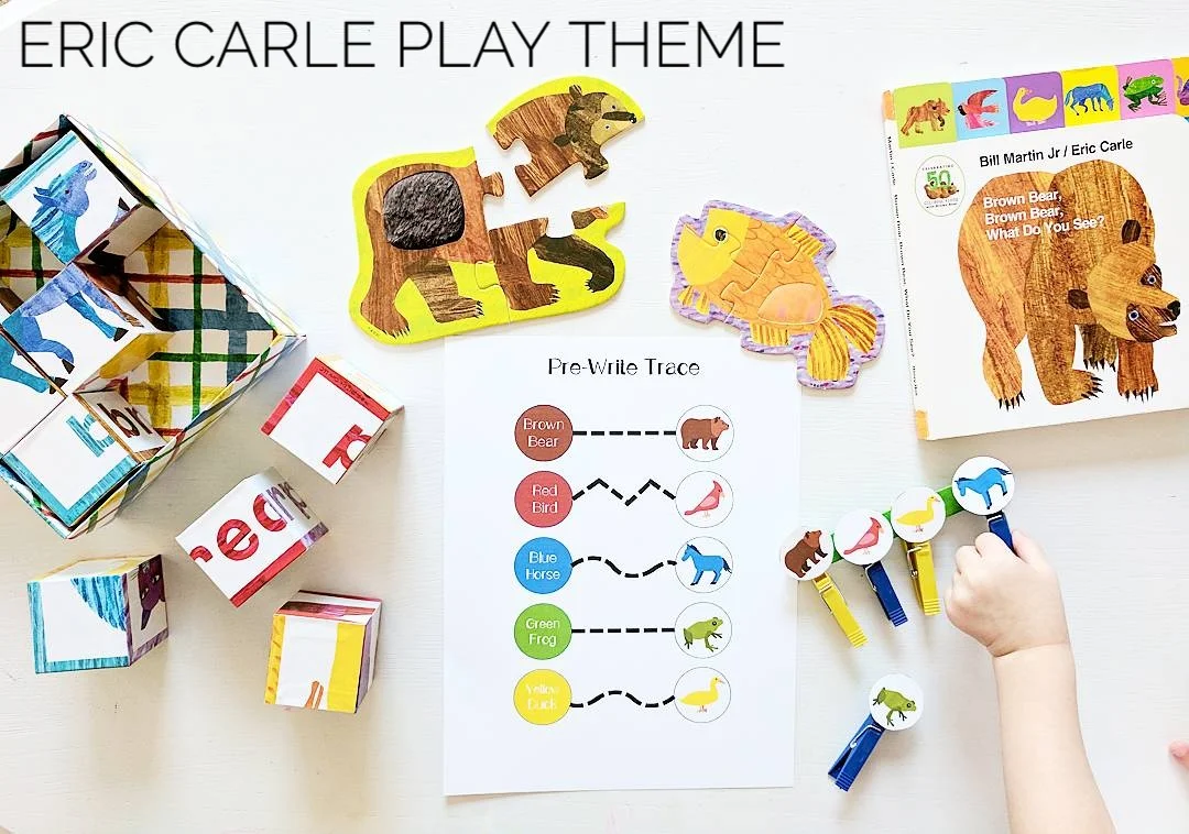 We tried something a little different for our play theme this time and focused on an author! In collaboration with Mudpuppy, I thought it would be fun to dive into the world of Eric Carle and use some of their puzzles and games to add to our activities!